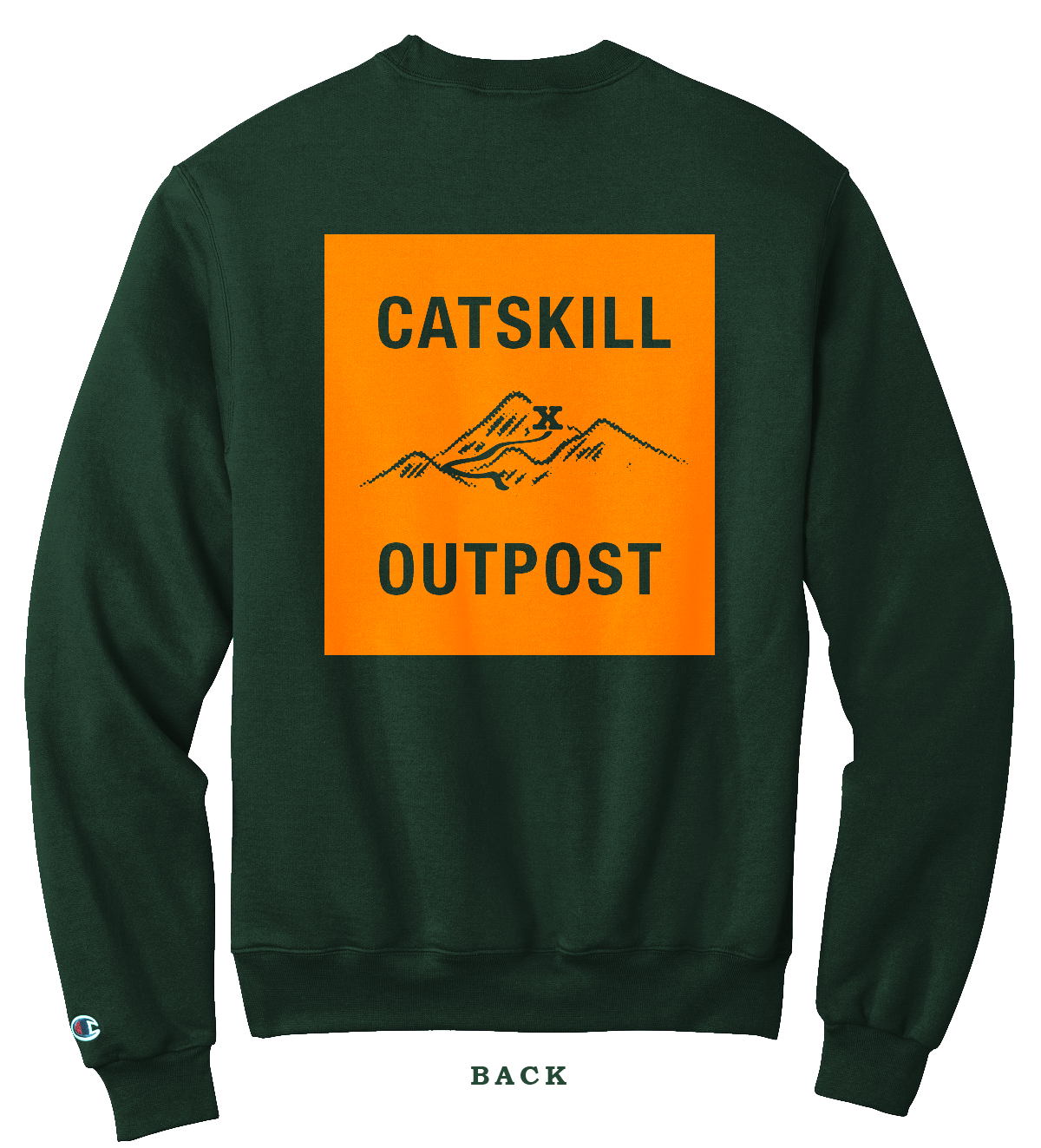 If we had a logo in 1975, this is what I'd imagine it to be. Premium midweight sweatshirt with an orange print (front and back) on a dark green sweatshirt.